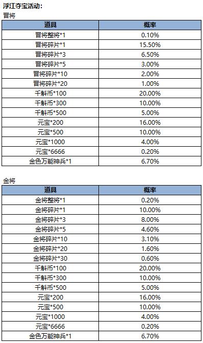 4、活动结算时,主公在本次活动期间获得的夺宝凭证将被转换成元宝,通过邮件发放。