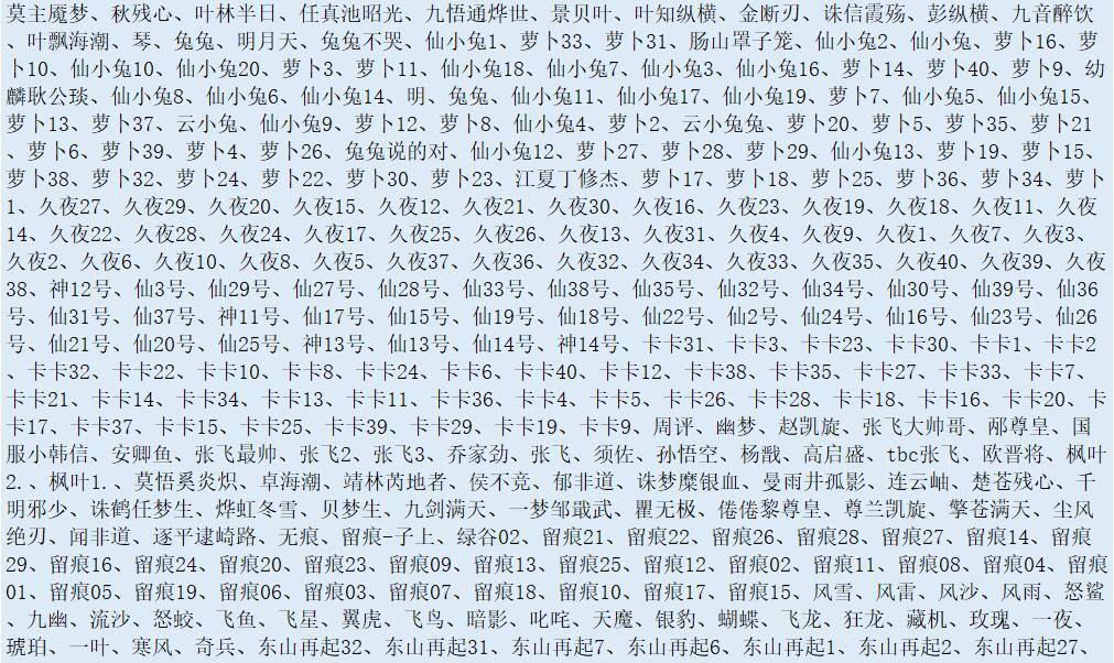 以下为部分使用第三方违规软件的账号处理名单(部分角色名因特殊字符可能没有正常显示),请各位主公引以为戒,后续我们将会定期进行检测核实以及严肃处理,感谢各位主公一直以来的支持,也欢迎主公如有发现此类行为,可以通过我们的官方客服进行反馈。