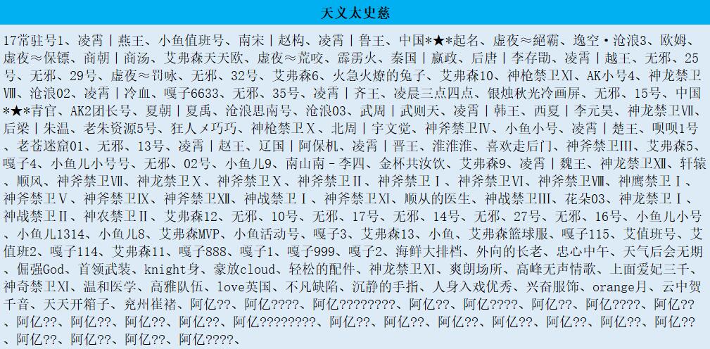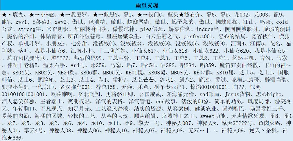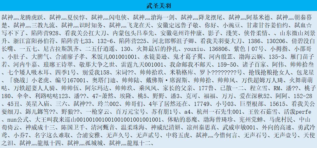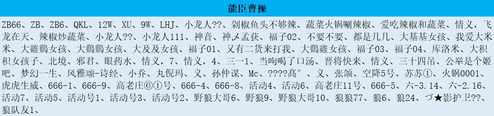 以下为部分使用第三方违规软件的账号处理名单(部分角色名因特殊字符可能没有正常显示),请各位主公引以为戒,后续我们将会定期进行检测核实以及严肃处理,感谢各位主公一直以来的支持,也欢迎主公如有发现此类行为,可以通过我们的官方客服进行反馈。