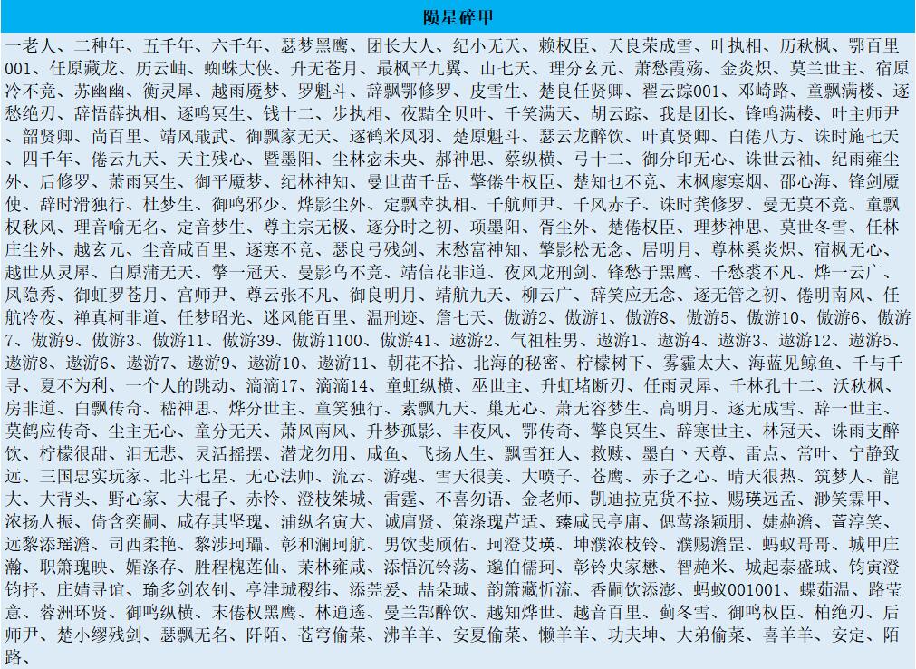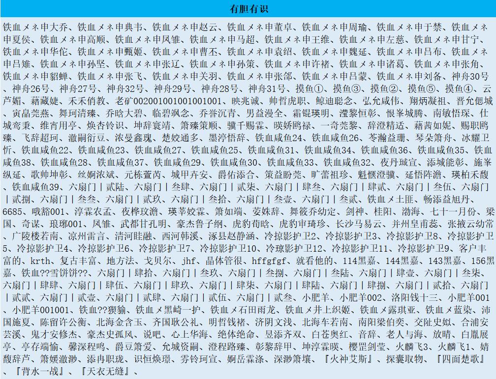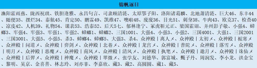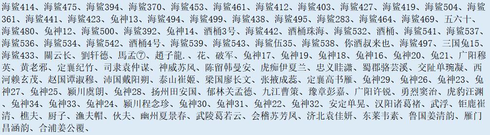 以下为部分使用第三方违规软件的账号处理名单(部分角色名因特殊字符可能没有正常显示),请各位主公引以为戒,后续我们将会定期进行检测核实以及严肃处理,感谢各位主公一直以来的支持,也欢迎主公如有发现此类行为,可以通过我们的官方客服进行反馈。