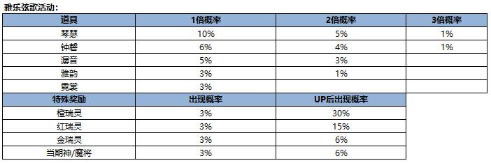 5、主公进入演奏时有几率出现特殊奖励,特殊奖励固定在奖励区的霓裳档位中,不可被更换,主公演奏出有倍数奖励的音即可获得。
