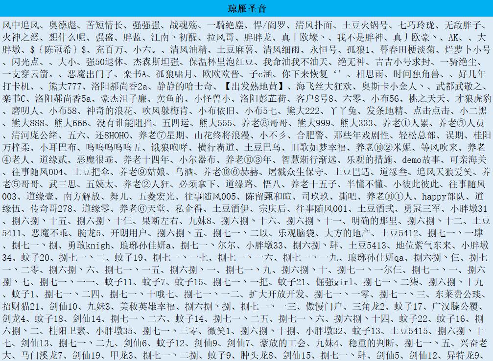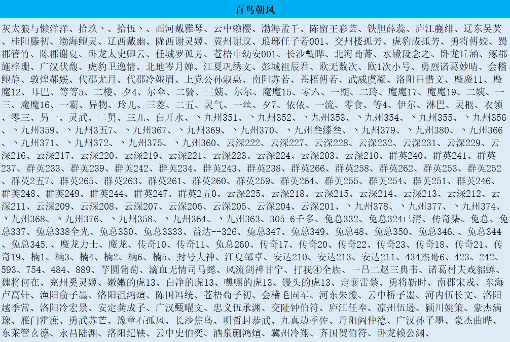 以下为部分使用第三方违规软件的账号处理名单(部分角色名因特殊字符可能没有正常显示),请各位主公引以为戒,后续我们将会定期进行检测核实以及严肃处理,感谢各位主公一直以来的支持,也欢迎主公如有发现此类行为,可以通过我们的官方客服进行反馈。
