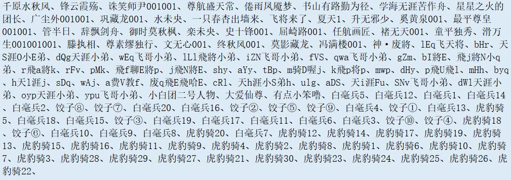 以下为部分使用第三方违规软件的账号处理名单(部分角色名因特殊字符可能没有正常显示),请各位主公引以为戒,后续我们将会定期进行检测核实以及严肃处理,感谢各位主公一直以来的支持,也欢迎主公如有发现此类行为,可以通过我们的官方客服进行反馈。