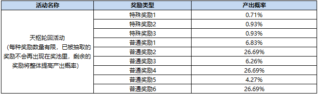天枢轮回活动进行了优化,当主公将当前奖池内容全部抽取完毕后,可重置奖池,开启新一轮奖励获取,累计最多可进行3轮。
