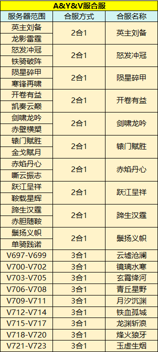 2、原服务器割须弃袍、卧龙观星、关公驯马等活动周期将重置,合服后统一按照合服区的时间开启活动。