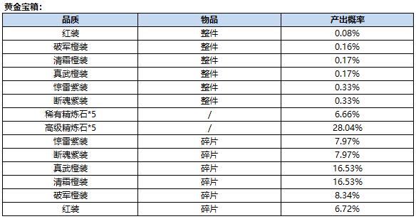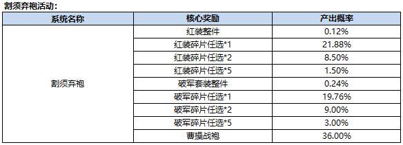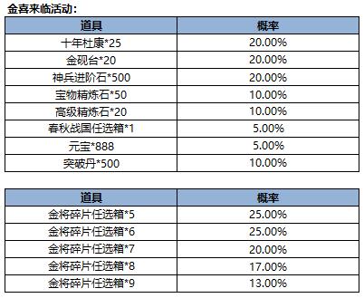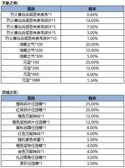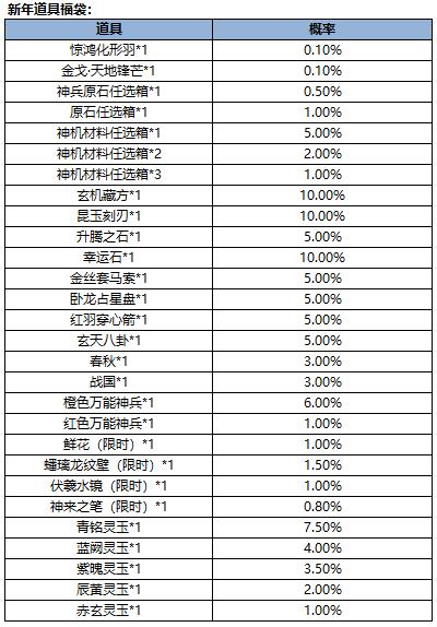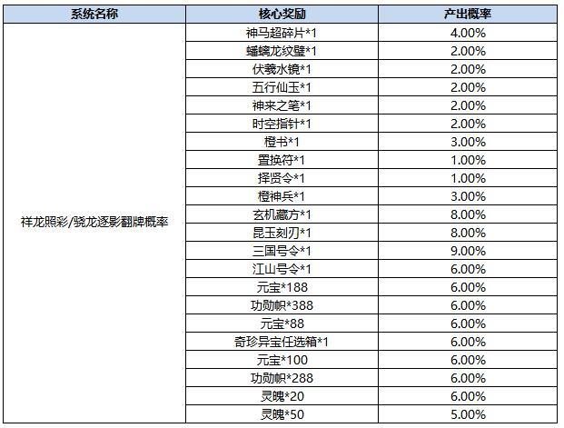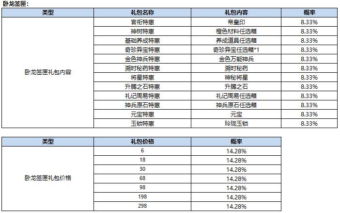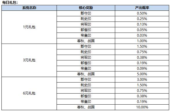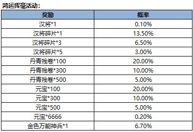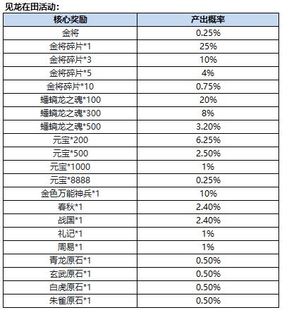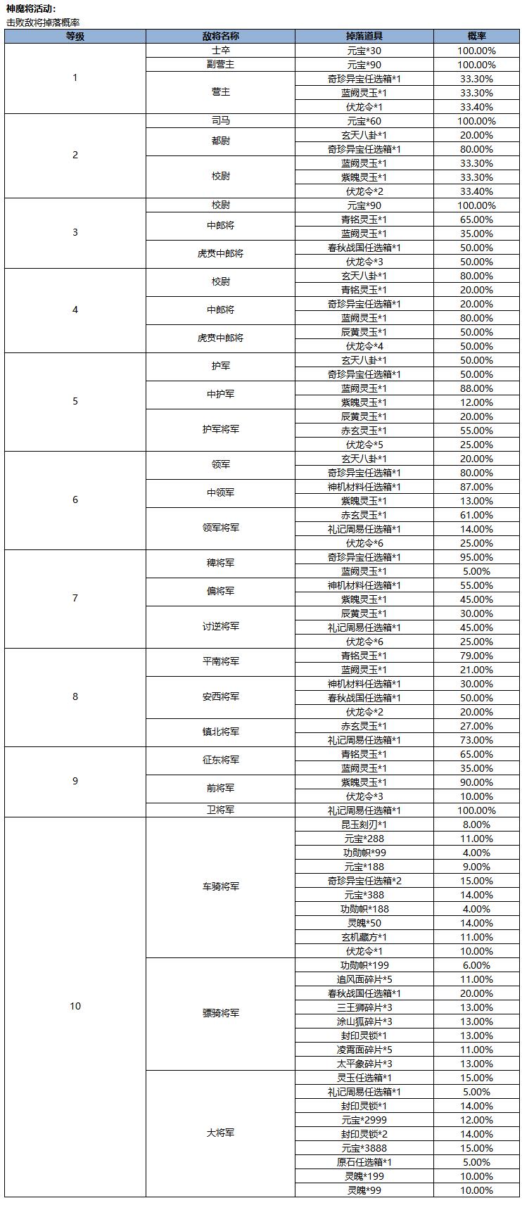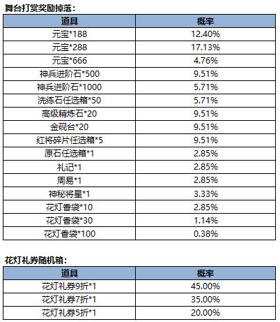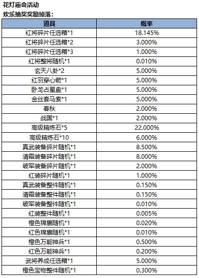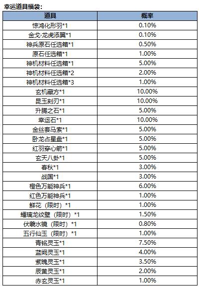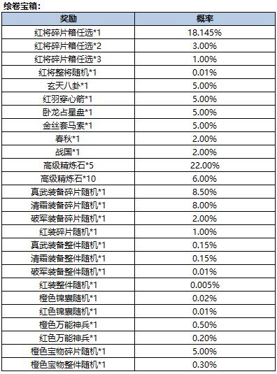 应国家有关法律规定,《三国杀名将传》对游戏内重要玩法的物品产出概率公布如下: