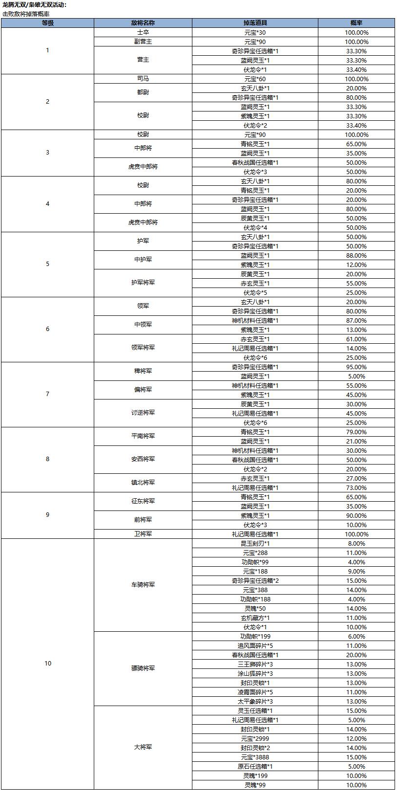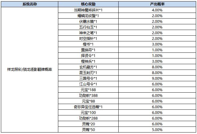 应国家有关法律规定,《三国杀名将传》对游戏内重要玩法的物品产出概率公布如下: